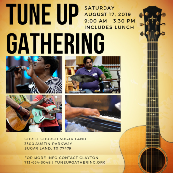 Location: TUNE UP is being held at Christ Church Sugar Land (3300 Austin Parkway, Sugar Land, TX 77479). The event will begin in the sanctuary; look for the signs when you arrive.
